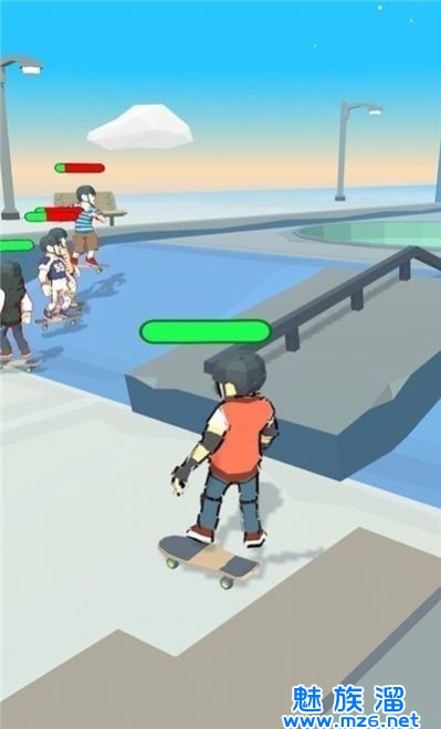 3、你可以解锁很多酷炫的滑板皮肤,在赛道上跟你的对手来一场精彩的滑板比赛,秀出你的操作。