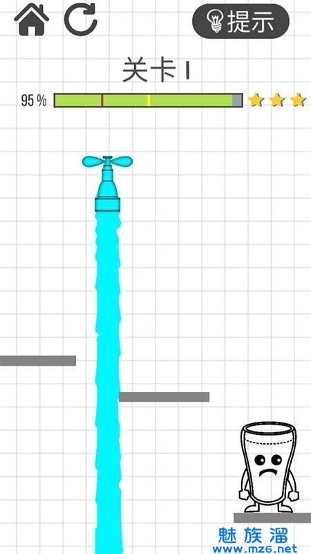 2、不过游戏关卡中总是会出现各种障碍物来阻止水杯灌满,我们需要使用线条来辅助这些水流;