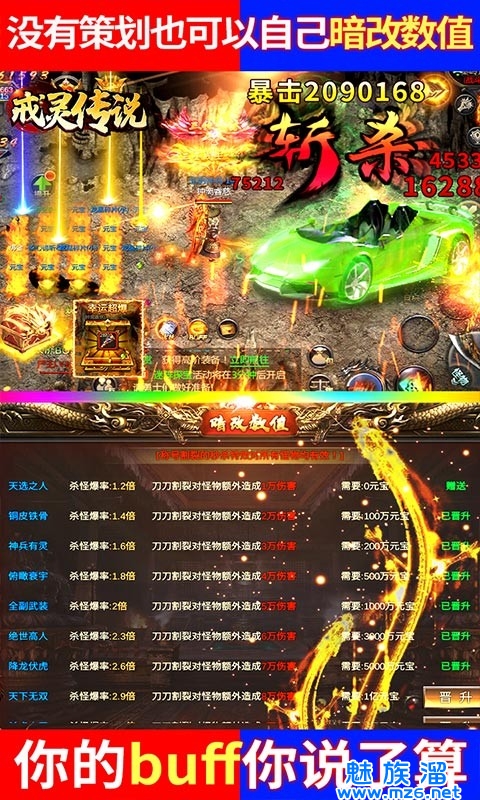 【戒灵传说】上线就送VIP10,68000仙玉,500W铜钱,天选之人(绝版称号),在线送10W充值卡,当天就可以使用,激活指定运营活动,上线送兰博基尼(体验),实现跑车自由,这么好的服,不来玩玩吗?没有策划也可以自己暗改数值,多少爆率你说了算,只需要体验2分钟,你就会跟我一样,爱上这个游戏。