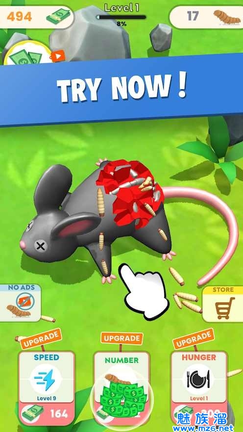 不断的移动起来,控制蠕虫向前冲刺,时刻注意前方的障碍物不要被伤害到。