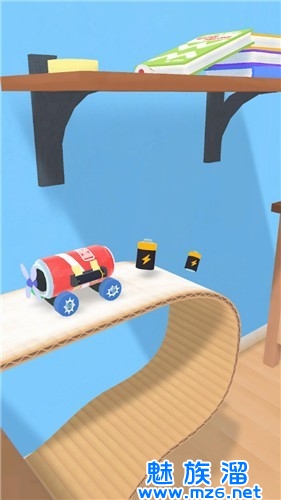 2、用很多中环保材料制作的小车以及赛道和障碍物,游戏中使用了3D的建模立体感十足。