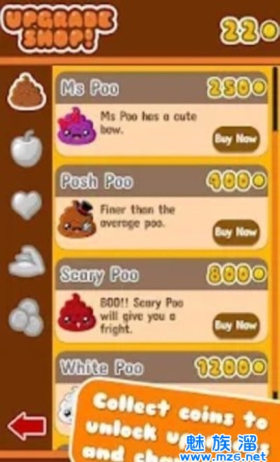 你可以通过在游戏中捡到金币来收集他们,也可以用你的金币来积累快乐便便的道具!