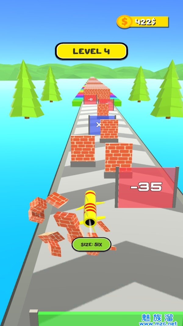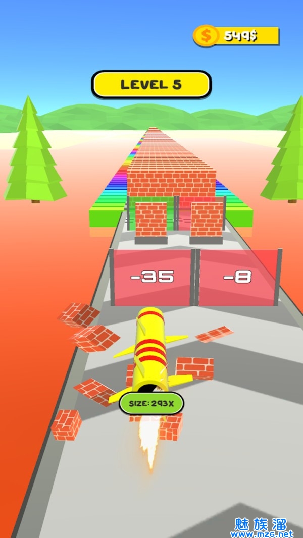 1、以导弹为玩家操作的目标的魔性跑酷游戏,途中的障碍并无法抵御导弹的威力。