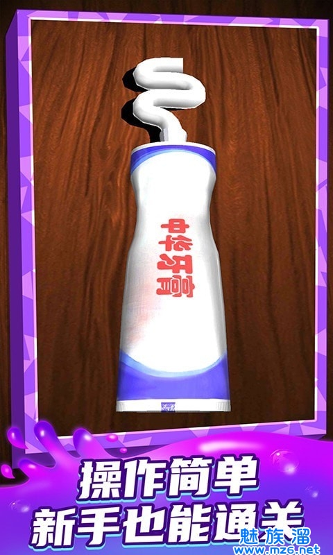1、点开页面就会出现一个拧开的牙膏,通过点击屏幕牙膏会越挤越多,挤完后会重新开始。