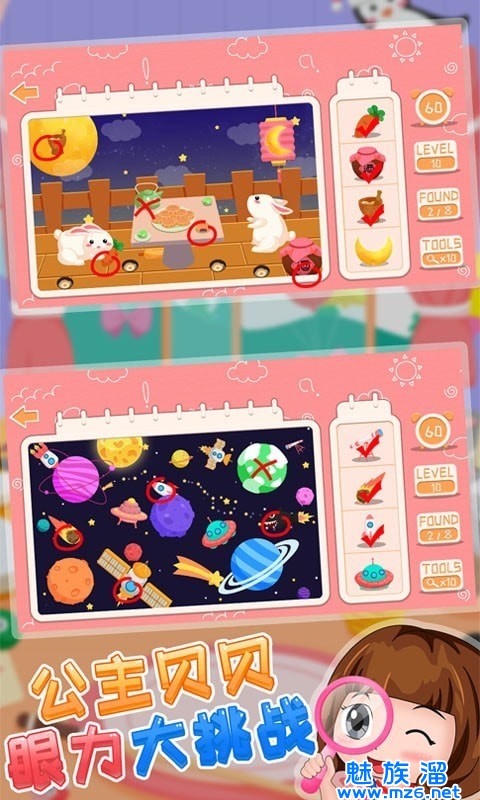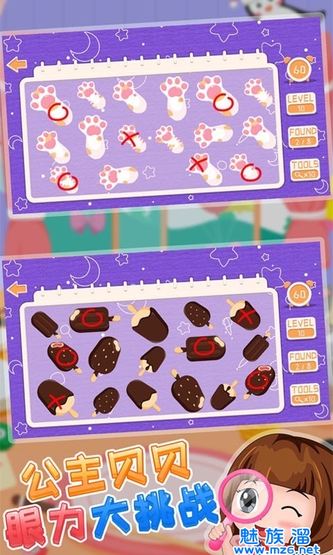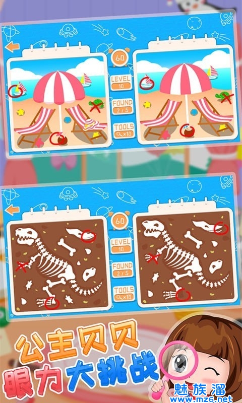 1、公主贝贝眼力大挑战中玩家要用很短的时间去完成找茬,可以培养你的专注力。