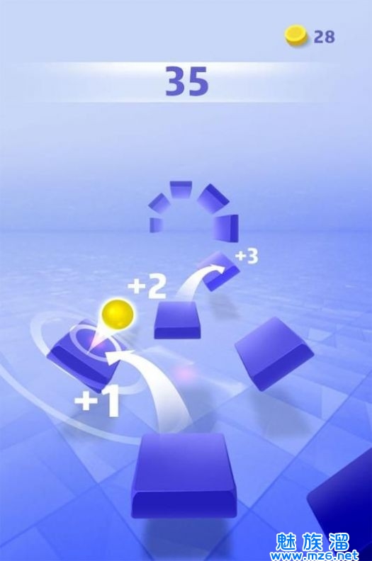 1、玩家控制小球跳跃平台时,会有许多障碍物出现,这非常考验玩家的连锁反应能力。