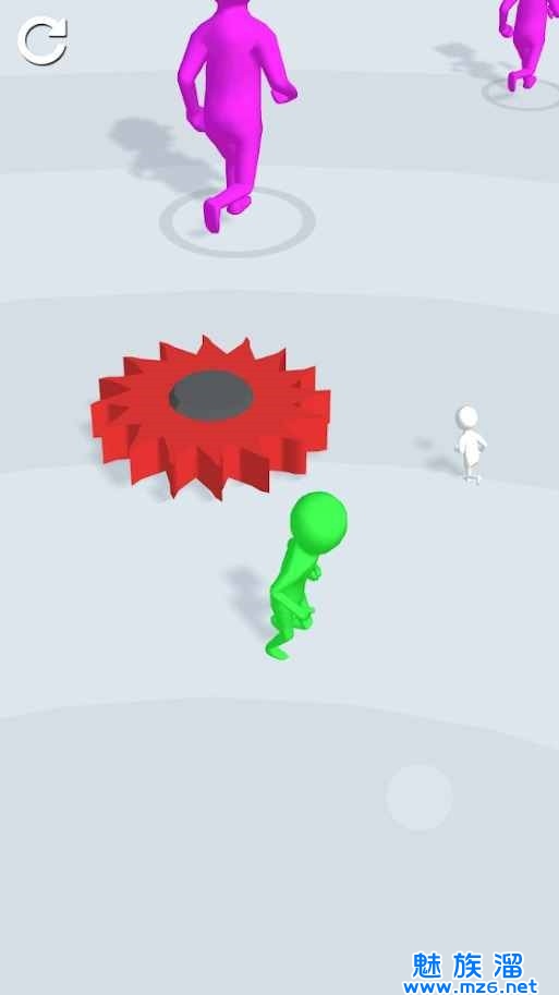 1、通过上下左右滑动屏幕控制角色移动,尽量多的吃掉白色小人,让自己不断变大。
