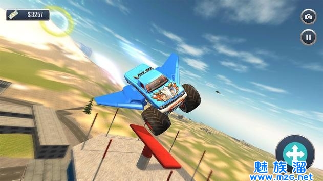 【越野飞行怪物卡车驾驶】操控着你的卡车越过关卡内一个又一个的障碍,在遇到比较高的障碍时可以为你的卡车装上翅膀哦,就可以飞跃过这些障碍了,非常的刺激哦,你还可以使用金币来为你的卡车进行改装,改装过后的卡车性能会更强哦,完成任务的速度也是会更快的。