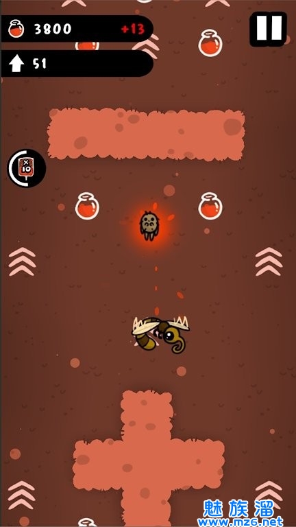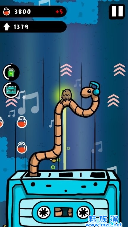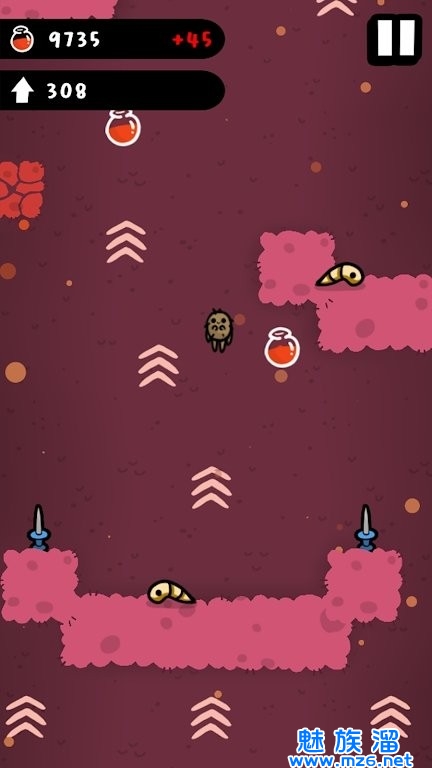 2、手指滑动来控制跳蚤的移动,注意躲避障碍物,并收集多多的药水。