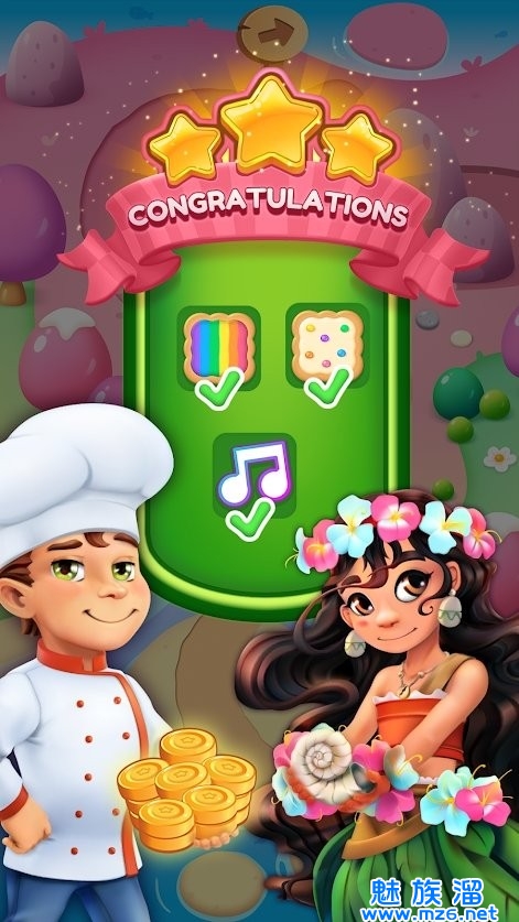 2、这里有很多的特殊道具可以使用,一边收集金币,一边完成多彩蛋糕的制作。