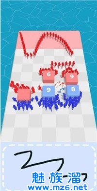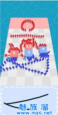 1、在游戏界面下方的方框中任意画线,派出自己的队伍,尽量通过倍增通道,完成挑战;