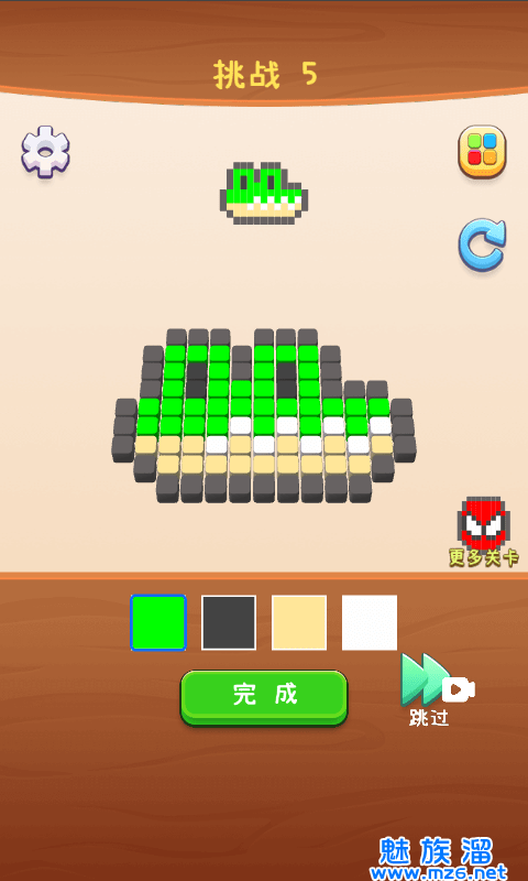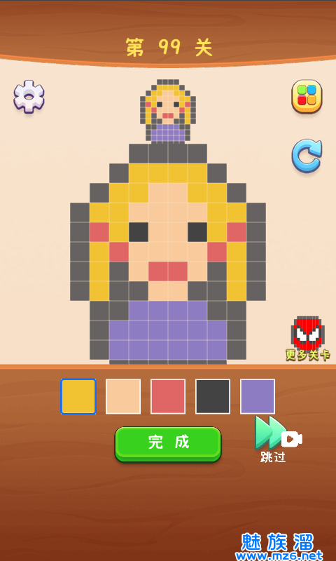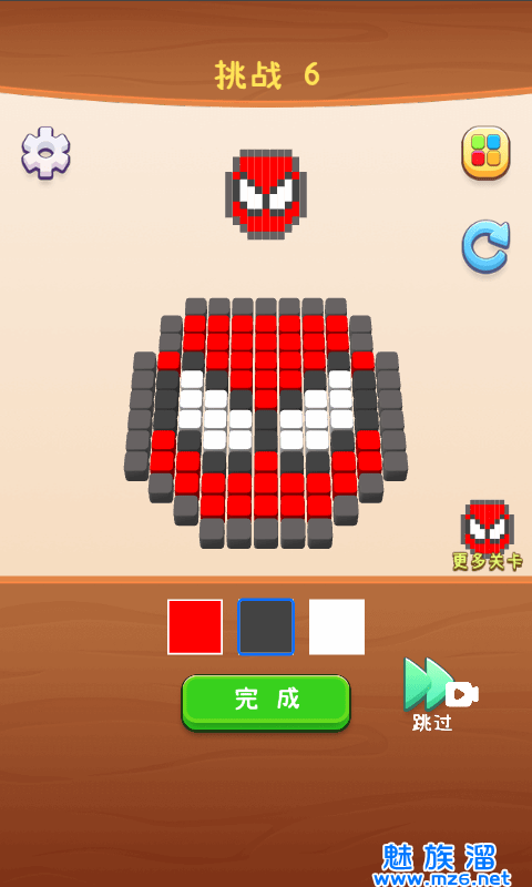 1、一款有趣的方块填色游戏,根据每个关卡的目标图进行涂色绘画,尽可能与目标图案一致并获得三星通关。