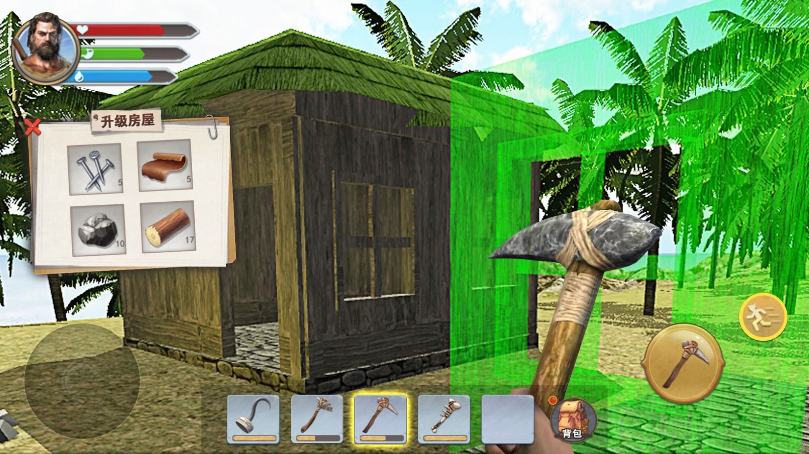 荒岛余生3D是一看第一人称视角的生存冒险手游,这款游戏中玩家将以第一人的的视角去体验一个荒岛生活,这款游戏的画面非常真实,3D的场景让你代入感十足。游戏中没有任何的限制,整体自由度非常高,你可以控制角色在荒岛上建房子,寻找食物打造工具,非常的有意思。