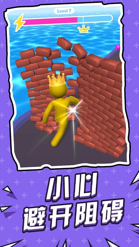1、通过左右移动收集跑道上的小人,会越变越大,体积越大,攻击力越强、能突破的砖墙更高;