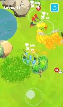 1、需要做的是收集更多白色小人当自己的战友,为自己带来更强大的战斗力;
