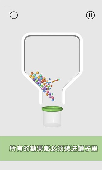 可爱的糖糖收藏,看你怎样用各种方法成功的通过这道屏障,想办法将游戏中的所有糖球都变成五颜六色的收集到瓶子中。