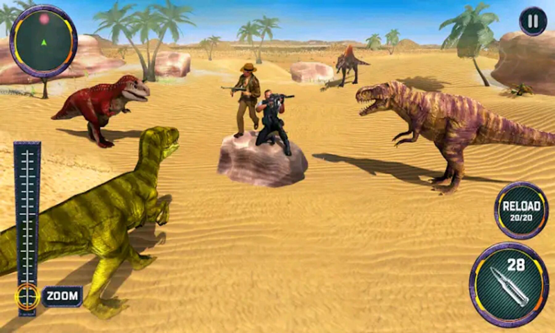 狙击界扛把子游戏是一款能让玩家真实体验射击狩猎的游戏,游戏中,玩家将在丛林中进行冒险,随处可见的恐龙以及其它一些生物都是潜在的危险,你要做的就是找到目标,以最快速度射杀,然后快速退出丛林,否则等待你的将是死亡的结果。狙击界扛把子游戏内,强大的射击技术,能给你带来非常大的帮助,感兴趣的朋友快来体验吧!