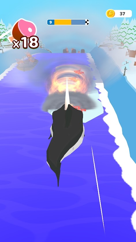 鲨鱼跑游戏是一款卡通3D风格的跑酷闯关游戏。操控鲨鱼在河流之中跑酷,吞噬河道中的小鱼,