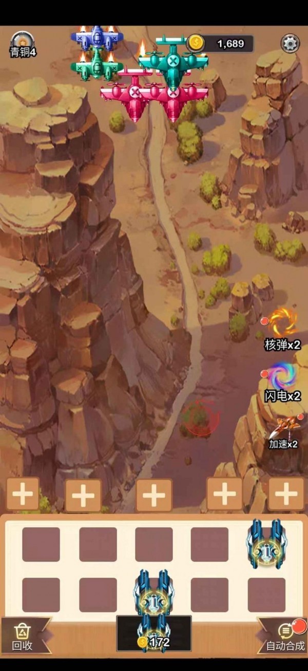 1、金币可用来购买更高级别的战机进行合成,逐渐提升队伍的整体实力。