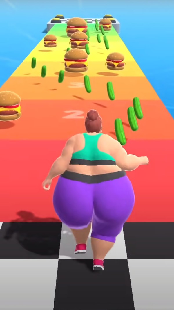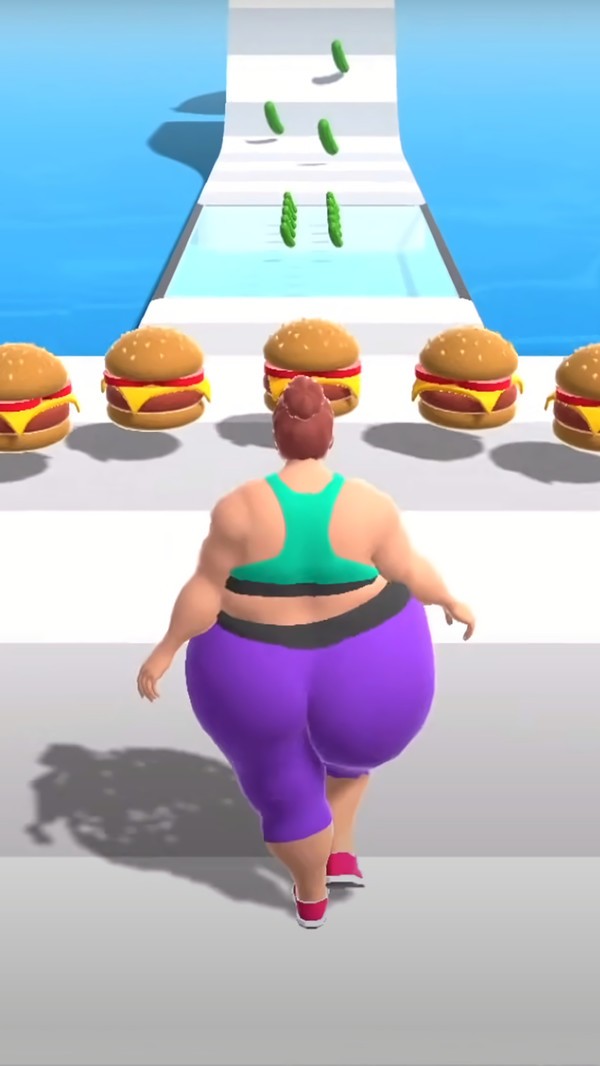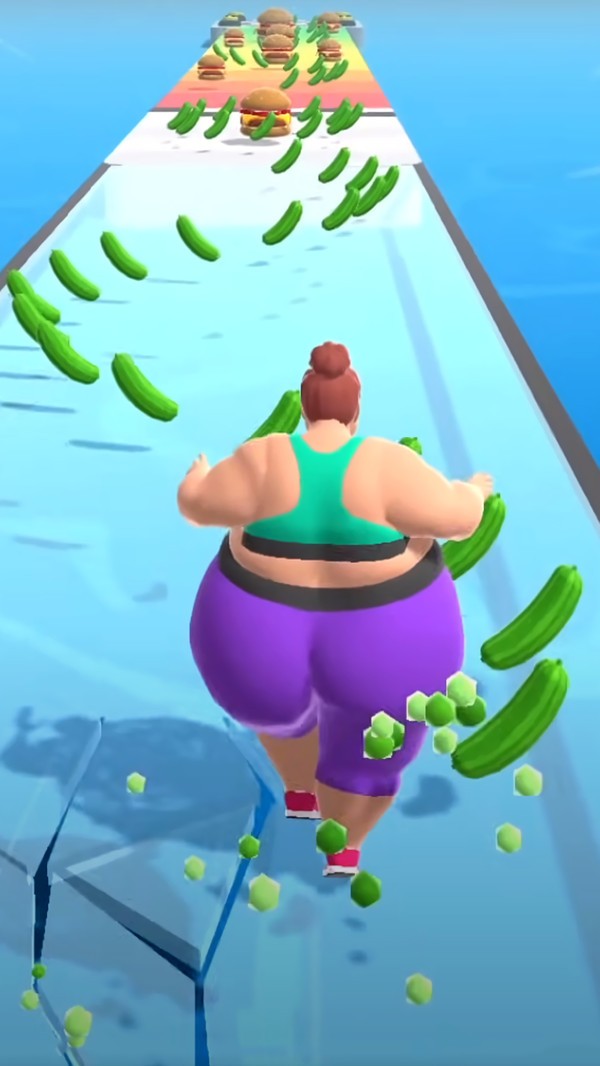3、需要帮助一个胖子减肥,跑酷中途你需要避免垃圾食品,尽量吃黄瓜蔬菜来减肥。如果你到达终点线之前瘦成一个漂亮的女人是要满足清关得分的。