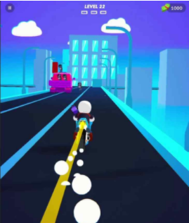2、会骑着摩托车在马路上行走,你可以左右滑动屏幕改变车的行动方向。