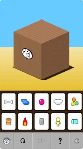 种“树”。这个图标位于左下角,看上去像是三棵不同的树。小“树”会出现在方块表面,然后又出现一个道具“人”。两个“人”挖开一条“河”,“河”挖好后,生长立方体顶部就变绿了。