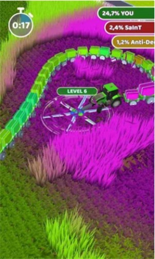 点击屏幕开始游戏后,你要滑动屏幕,你的拖拉机将会随着你的滑动而移动,以割掉更多的草。