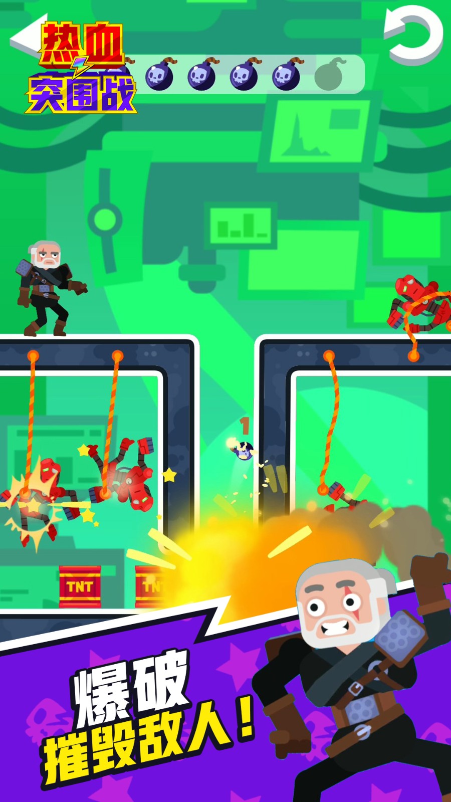 2、用你的战士的身体粉碎屏幕上的所有敌人;