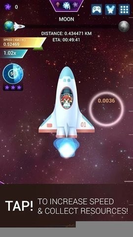 点击画面可以加快宇宙飞船的飞行速度,减少到达目的地的时间。点击频率越高,速度越快;