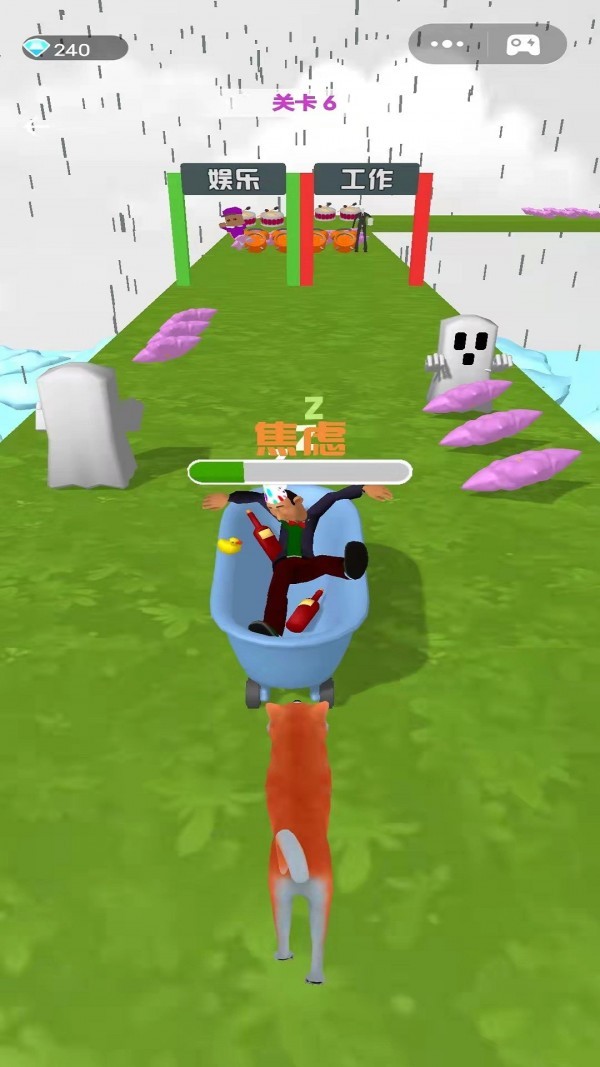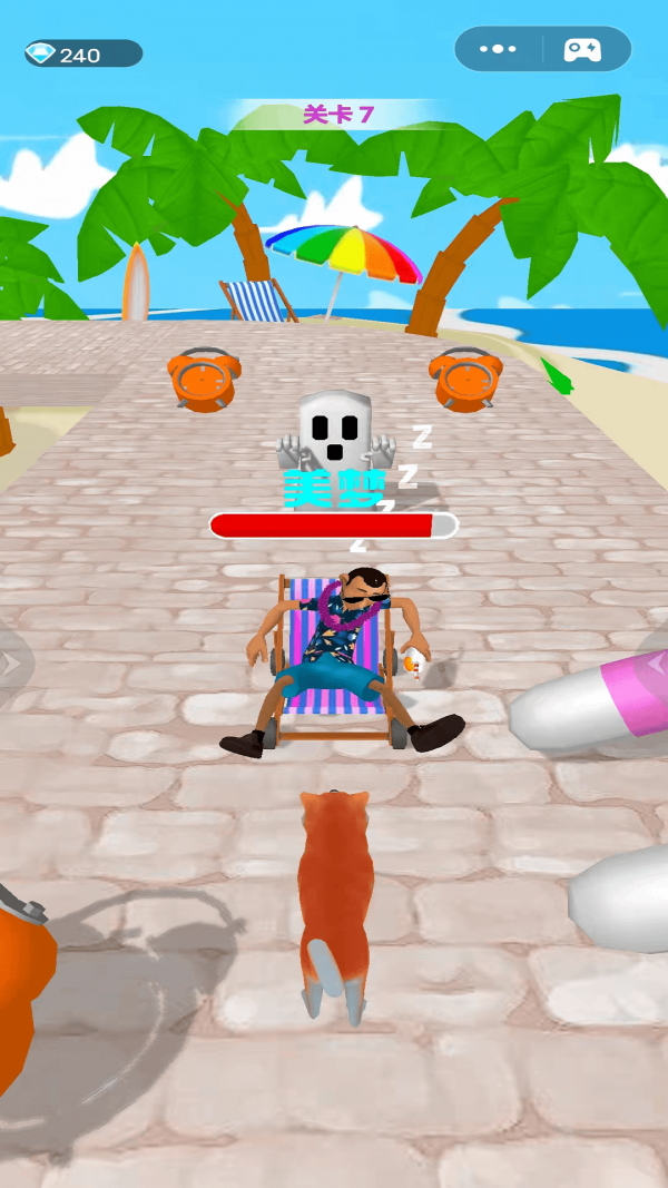 1、梦中跑酷,收集枕头、糖果等道具冲向终点。