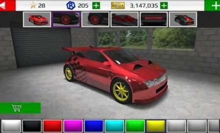 多辆高性能拉力赛车可供驾驶,每辆都有不同的规格。