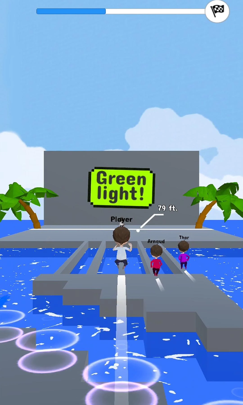 2、体验一场场精彩互动,控制角色如同木头人一样快速向着终点前行;