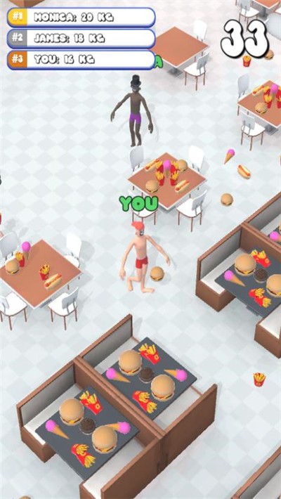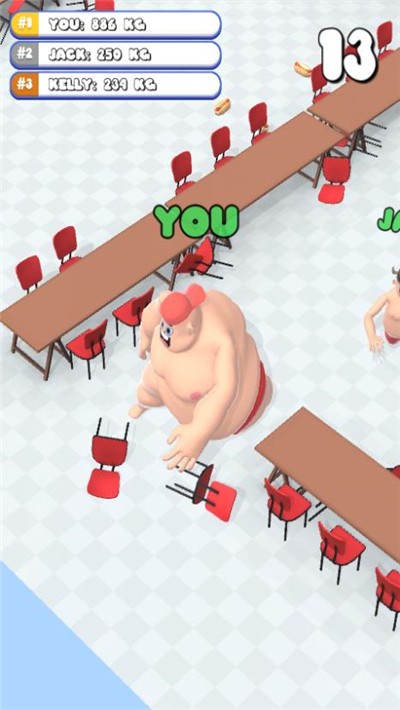 3、控制角色不断的抢夺食物让自己变得更胖,越胖的人获得积分越高坚持到时间结束将成为最终的胜利者。