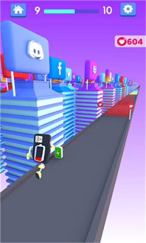 1.电池角色在进行跑酷的过程中会损耗电量,你需要不断拾取电池才能维持行动。