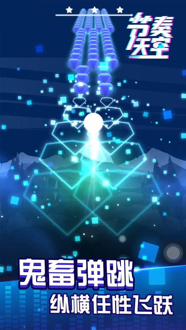 1、玩家可以选择各种不同节奏模式的闯关,你需要更加准确的控制小球跳跃的距离,完成更多不同闯关挑战。