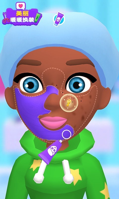 我们一共有六大服务,请先从舒适的面部护理开始。清洗她的脸部,拔掉多余的眉毛,再挤掉红肿的痘痘。你的顾客又变成了一个美丽的女孩。然后,请使用真实的美发工具,为你的顾客精心制作一个发膜。别忘记为她挑选时尚的配饰。