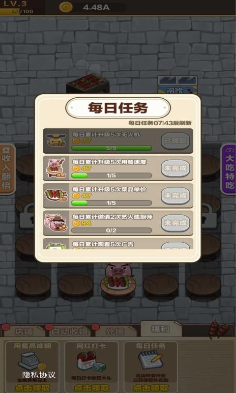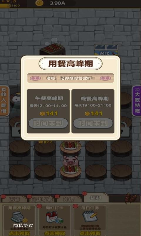 你的厨师,你的烧烤餐厅也都是可以自由的提升等级的,这可以让你的餐厅变得更好。