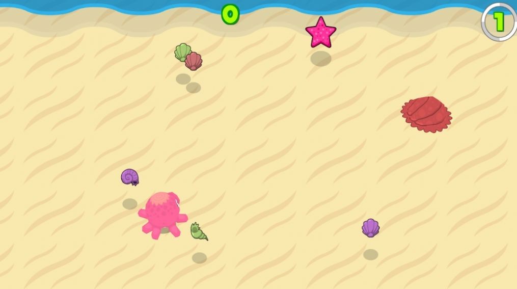 3.用手指按下,躲避敌人和障碍物,让鱿鱼跟着你的手指吃更多的贝壳和其他物体。