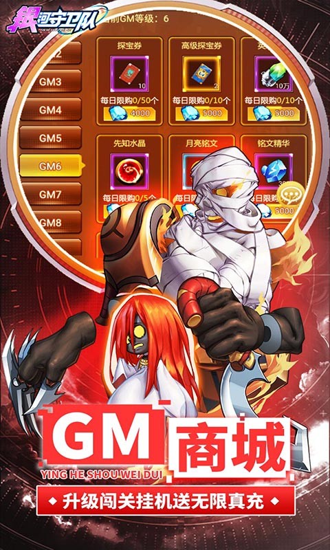 5、升级闯关挂机送无限真充,GM商城无限资源