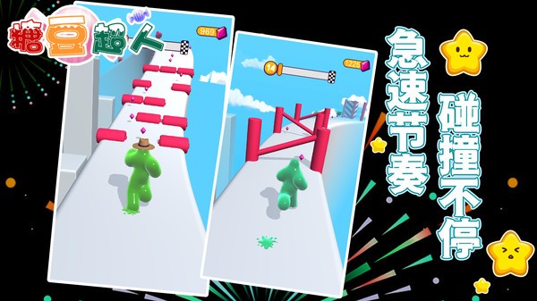 1、玩家需要操控糖豆人来进行跑酷冒险的活动,在城市中跑酷的同时,可以收集更多相同颜色的糖豆人一起来完成挑战。