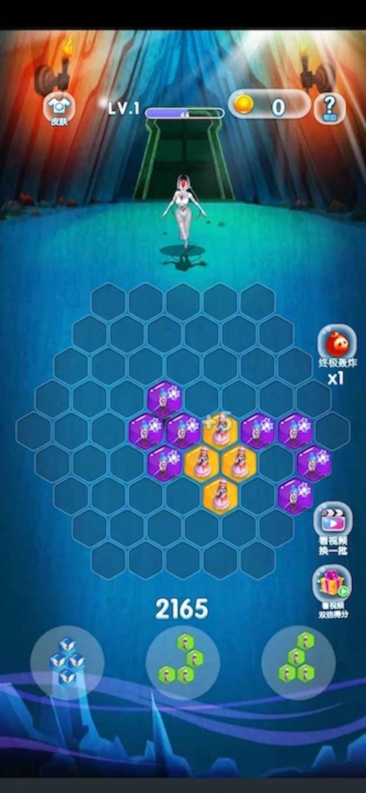 1、在一起玩怪兽中,根据更多类型的形状,将彩色方块放置在正确的位置并完成单次淘汰以攻击怪物。