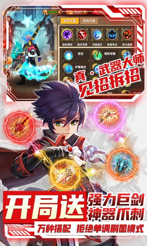 无职业特性,武器即技能设置,转换武器即更换职业,1W+种技能组合方式,找到最合适自己的技能组合,战斗过程中所向披靡.