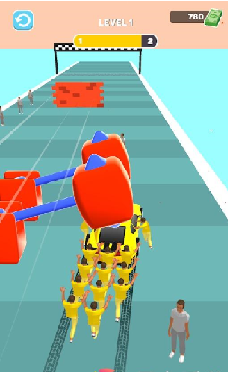 1、摇杆操控小车移动,撞飞路人就可以增加推车人数,躲避陷阱,让你秀出自己驾驶技术。