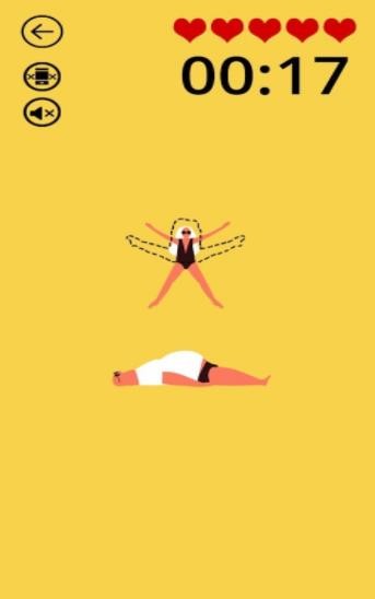 3.每个人物的动作与框中一致时,你就会闯关成功。如果不一致,没有出现在框中等等情况都会消耗一个体力值,消耗完毕闯关失败。