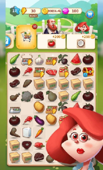 2、依次操作突破更高级别。出售合成的蔬菜给需要的客户,让你自由合并畅享。