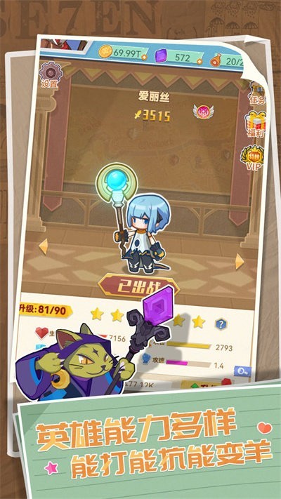 1.精美的卡通风格,可以在战斗中领取奖励,也可以获得强大的阵容。