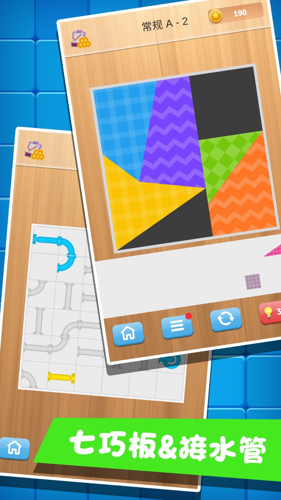 有七巧板、连线、填方块、逃脱、数独、一笔连线、滚球、接水管、一笔画、点线成画、色阶、