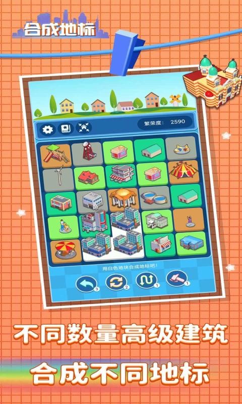 2.建筑越先进,你能获得的利润越多。合成相同的建筑以获得更多的建筑。