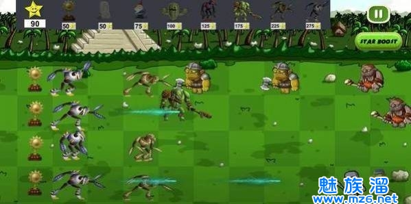怪物守卫大战中,玩家将会来到一个怪物的世界,在这里你要去操控怪物来与丧尸机械能给战斗,是一款非常具有策略性的游戏,一个怪物占一个格子,怪物的站位将会决定着你是否可以顺利的打过丧尸,成功地通关游戏,成为一个策略大师,组建自己的怪物军队!