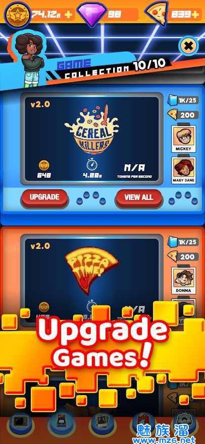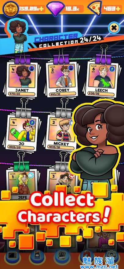 收集角色卡并用比萨饼和代币升级它们!很好玩,很简单,是一款免费的休闲街机大亨游戏。